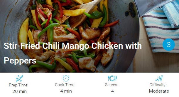 - Restir broth mixture and swirl into wok and stir-fry 1 to 2 minutes or until chicken is just cooked through and peppers are tender crisp. Remove from heat, add mango and stir until just combined.
