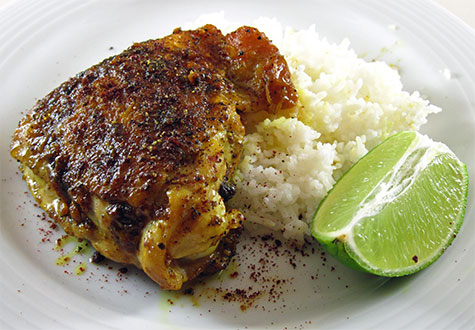 - Transfer chicken to a serving platter, turn up heat to high, and reduce cooking liquid for a few minutes, stirring occasionally until it’s slightly thickened. Season to taste with salt and pepper, and pour sauce over chicken. Dust chicken with sumac and pepper, garnish with lime halves, and serve.