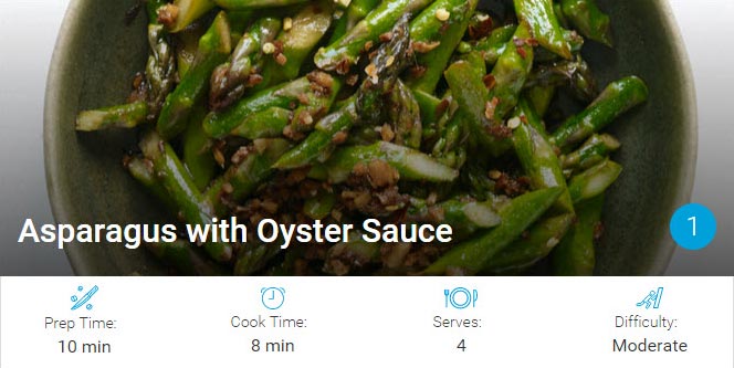 - Add broth and cook, stirring occasionally, until asparagus are crisp-tender, about 3 to 5 minutes. Add oyster sauce and red pepper flakes; stir and cook until heated through, about 1 minute more. Remove from heat and serve immediately.