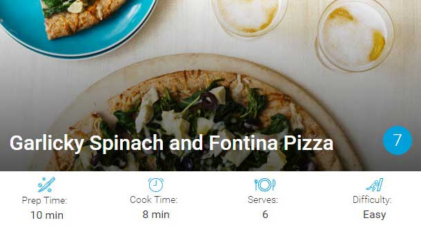 - Place crust on baking sheet. Top crust evenly with spinach, artichokes, and olives. Sprinkle evenly with fontina. Bake until cheese has melted, about 8 minutes. Cut into 6 wedges.