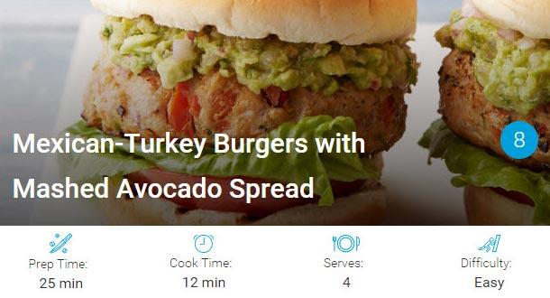 Mexican-Turkey Burgers with Mashed Avocado Spread