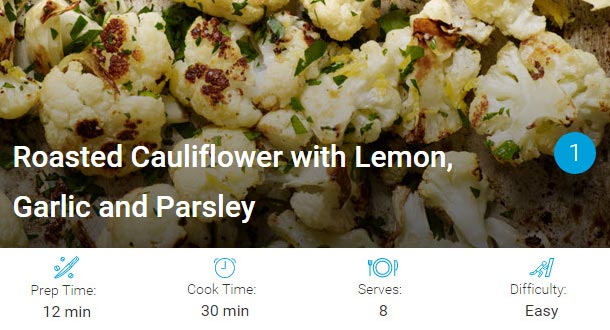 Roasted Cauliflower with Lemon, Garlic and Parsley