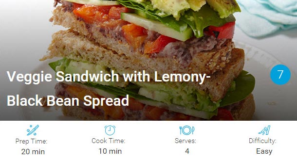 - Spread about 1/4 cup bean mixture on each of 4 slices toast; top each with 1/4 of roasted pepper, cucumber and spinach. Spread avocado onto remaining slices toast; top sandwiches with toast and serve.