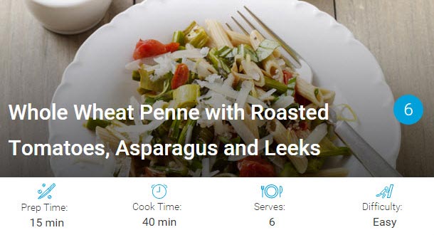 Whole Wheat Penne with Roasted Tomatoes, Asparagus and Leeks